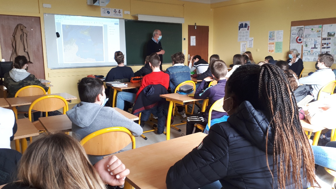 Parallèlement, l’association "SOS Méditerranée" est intervenue en classe de 4e pour évoquer les raisons qui ont conduit des citoyens européens à entendre les appels de détresse lancés en méditerranée. Ce fut l’occasion de relater la manière dont les opérations de sauvetage ont pu être organisées depuis 2016.